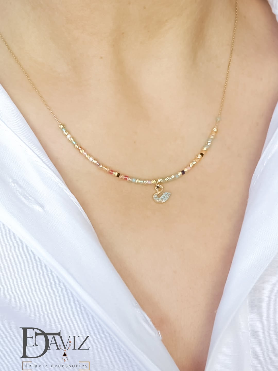 گردنبند البرنادو و منجوق با آویز قو -11